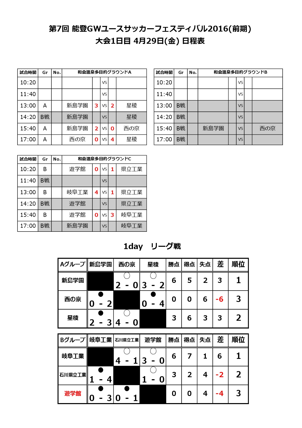 第7回 能登GWユースサッカーフェスティバル2016【前期】
